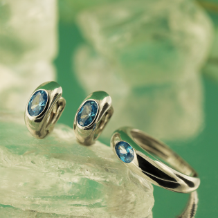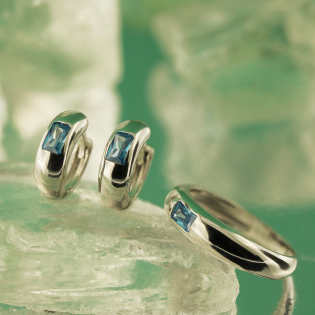 საყურე:სინჯი: 585წონა: 2,74თეთრი ოქრო ცისფერი ტოპაზის ქვითბეჭედი:სინჯი: 585წონა: 2,23ზომა: 17,9