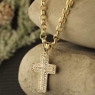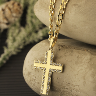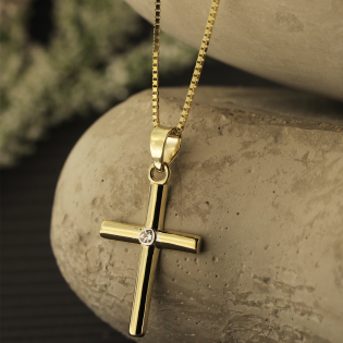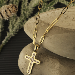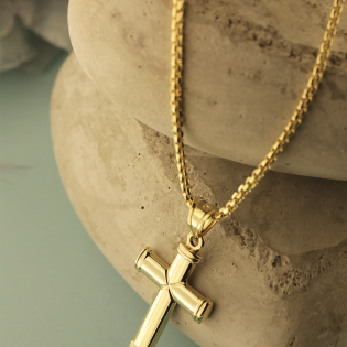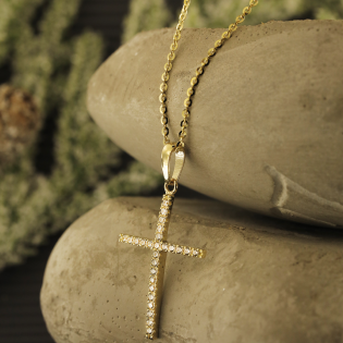 ჯვარი:სინჯი: 585წონა: 2,85ყვითელი ოქრო ლაზერული დამუშავების ბურთებითცეპი რეგულირებადი:სინჯი: 585წონა: 5,75
