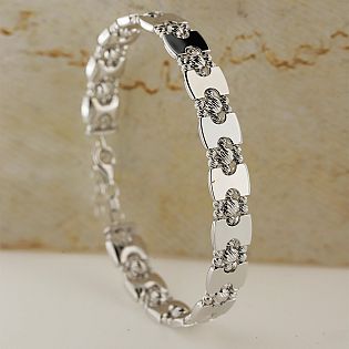სამაჯური:სინჯი: 585წონა: 7,92თეთრი ოქრო ლაზერული დამუშავებით