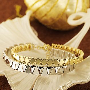 სამაჯური:სინჯი:585წონა: 10,68ყვითელი ოქრო რომბებით გაწყობილისამაჯური:სინჯი: 585წონა: 14,09თეთრი ოქრო სამკუთხედებით გაწყობილი