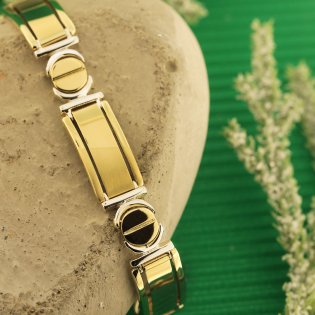 სამაჯური:სინჯი: 585წონა: 21,0თეთრი და ყვითელი ოქრო ლაზერით დამუშავებული